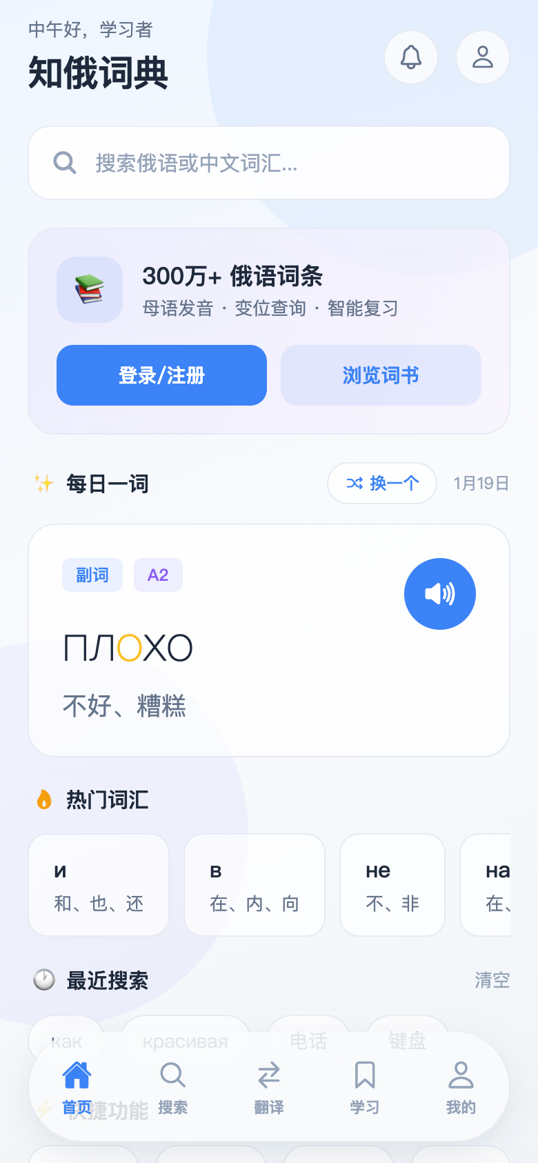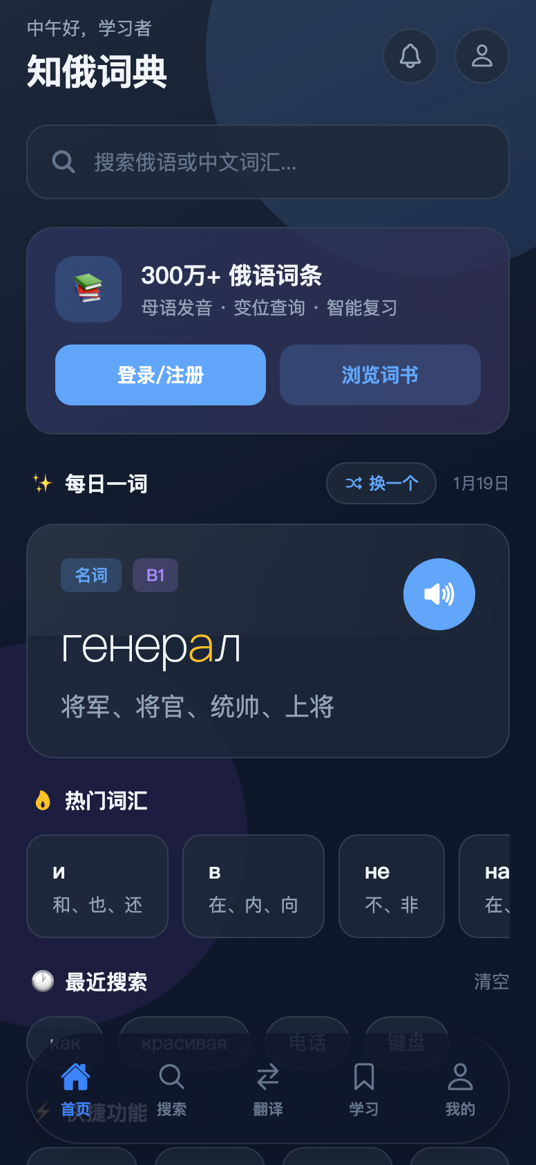 收录 30万+ 俄语词汇, 支持 AI智能翻译、语音发音、拍照翻译